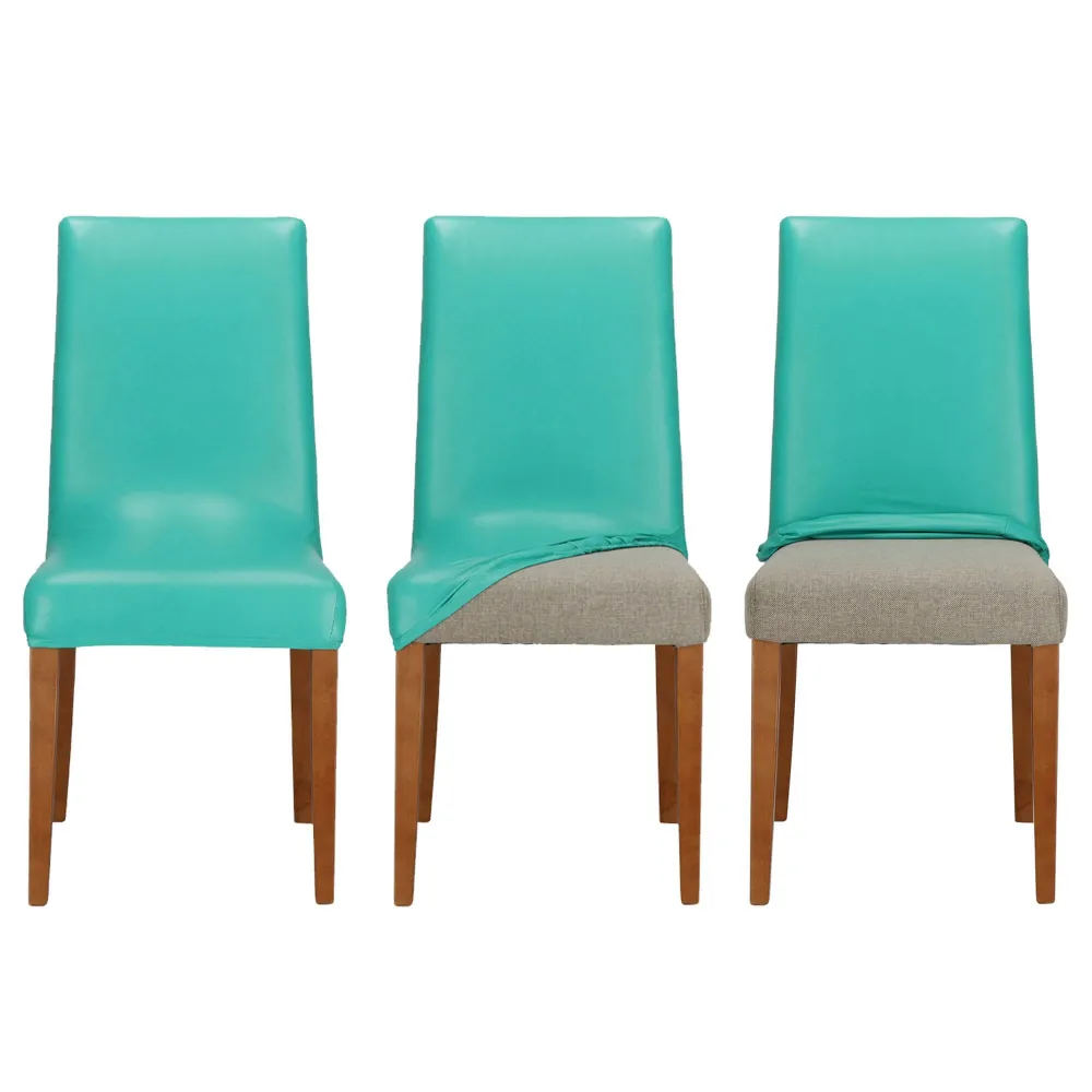 Elastický poťah na stoličku s imitáciou kože v tyrkysovej farbe. Napínací a univerzálny, vhodný pre všetky typy stoličiek. Vyrobený z príjemného a odolného materiálu. Jednoduché nasadenie a jednoduchá údržba. Elegantný vzhľad pre každú domácnosť.