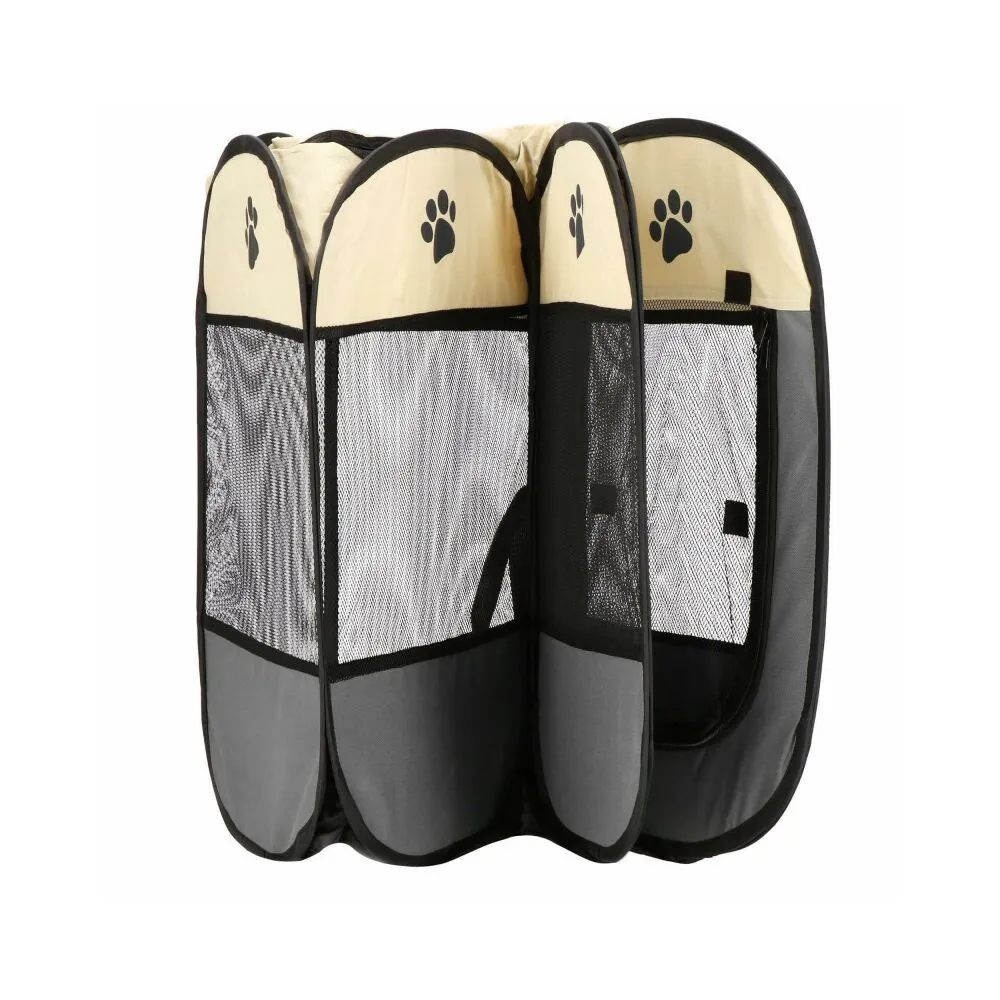 Skladacia ohrádka pre psy a mačky . Rýchle a ľahké zloženie a rozloženie. Univerezálne použitie. Odolný materiál, ľahko sa čistí. Steny fungujú ako ochrana pred hmyzom, poskytujú plnú cirkuláciu vzduchu, odnímateľná strecha. Zaujímavý design, tlmené farby.
