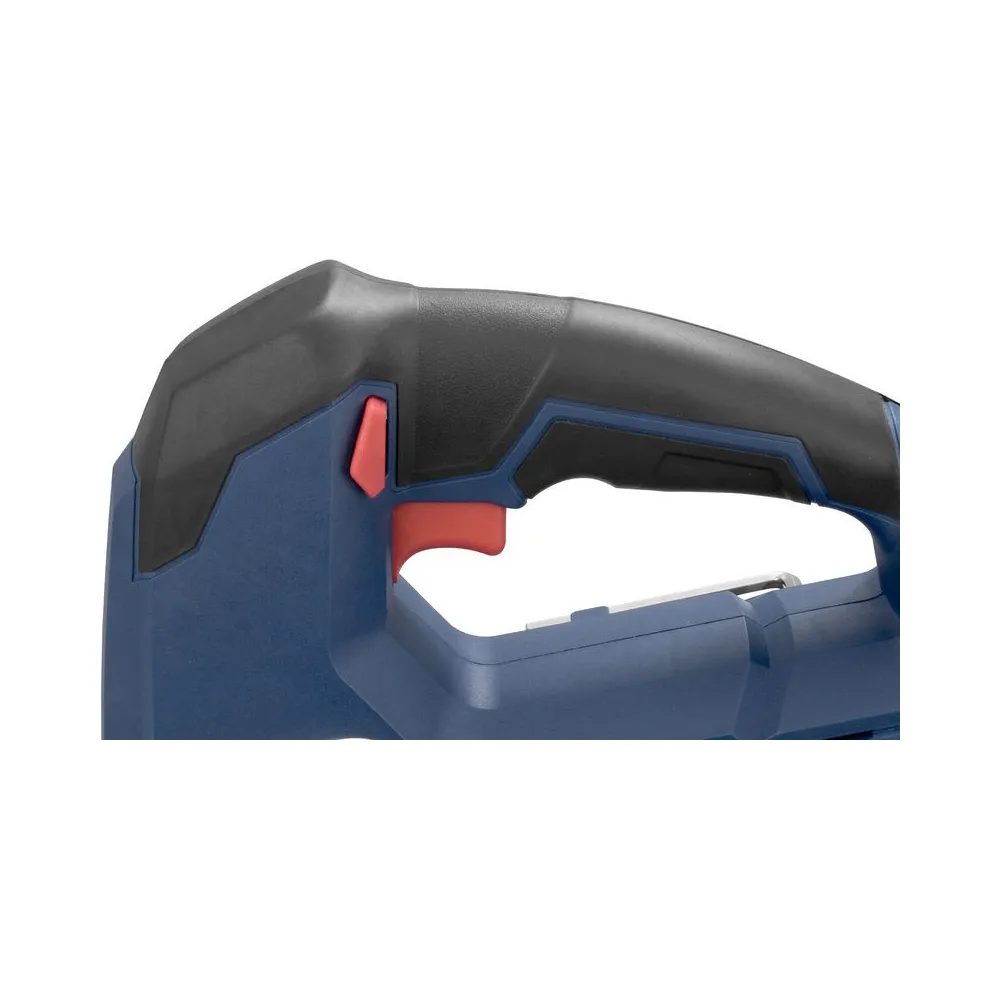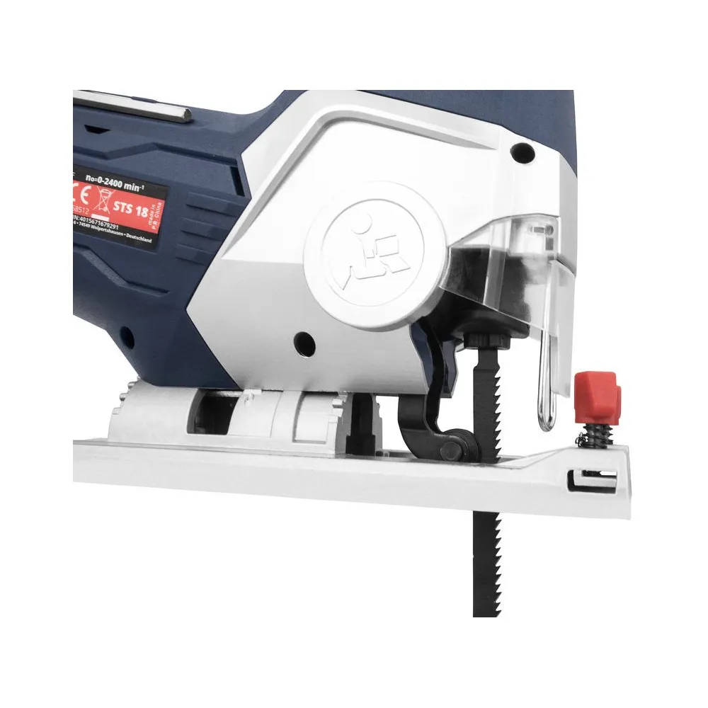 Akumulátorová priamočiara píla zo série akumulátorového náradia 18V E3 na rezanie dreva do hrúbky 80mm. Štyri polohy predkmitu pre optimálny rezný výkon. Rýchly postup rezania a optimálny krivočiary pohyb. Ofukovanie pilín pre čistú líniu rezu. Nasaditeľný ukazovateľ reznej línie. Priehľadná ochrana pílového listu, chránič proti vytrhávaniu materiálu a integrovaná LED lampa na osvetlenie pracovnej oblasti. Rýchla výmena pílového kotúča bez použitia náradia. Hliníková základná doska s posuvnou pätkou. Obojstranné nastavenie rezného uhla s pevnými polohami 0°/5°/30°/45°. Prípojka pre externé odsávanie prachu. Pílový list na drevo, pílový list na kov, paralelný doraz, ochrana proti trieskam, ukazovateľ reznej línie. Bez batérie a nabíjačky.