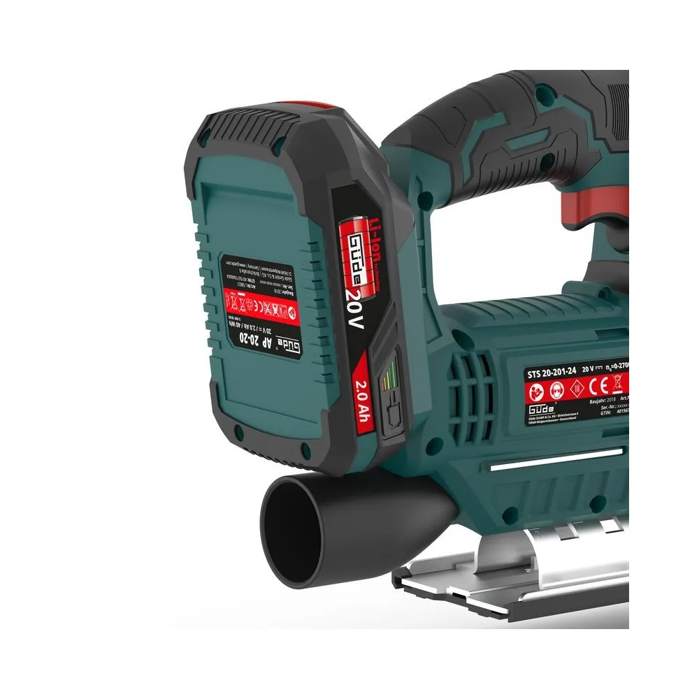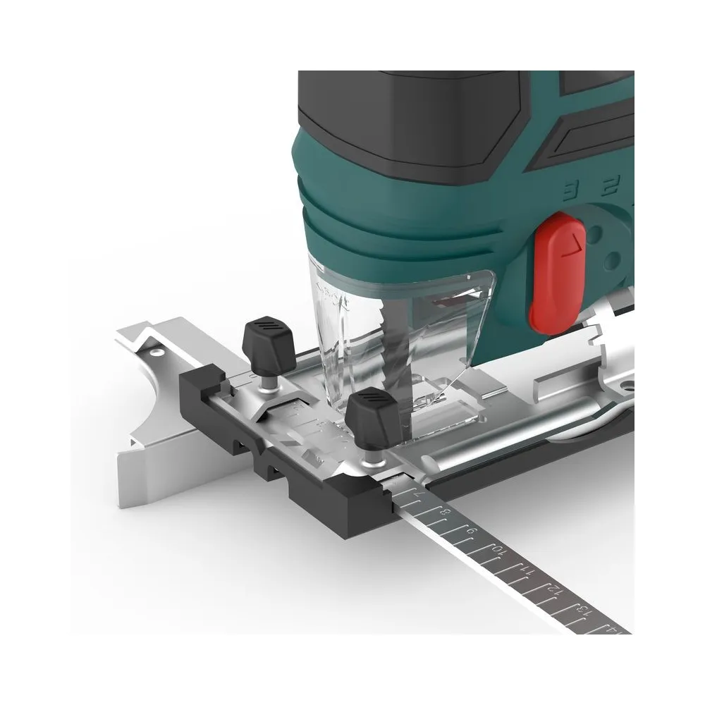 Akumulátorová priamočiara píla so 4 stupňami predkmitu, rezanie dreva do hrúbky 80 mm. Ofukovanie prachu, transparentný kryt, rýchla výmena pílového listu bez náradia, hliníková základová doska, signalizácia stavu nabitia. Integrované pracovné LED svetlo. Prípojka pre externé odsávanie prachu.