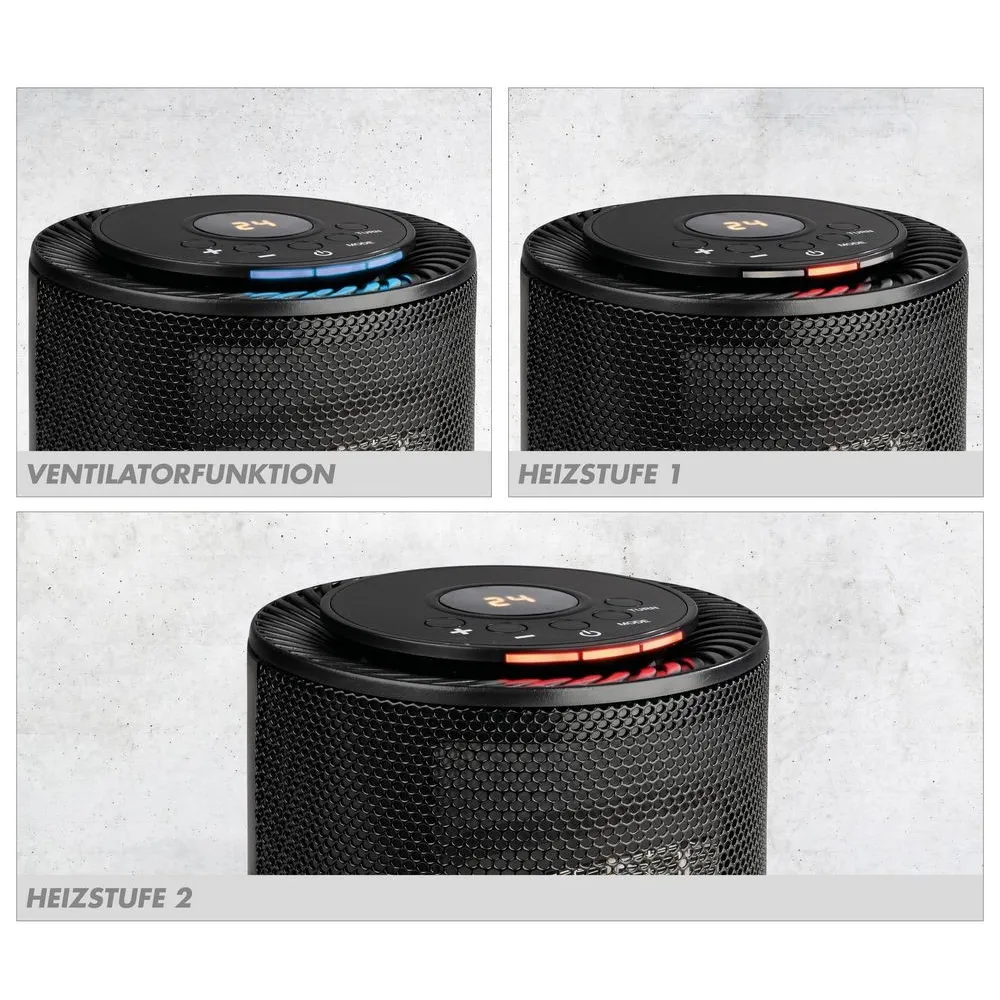 Malý, kompaktný a predsa veľmi pôsobivý vďaka designu a funkcii. Teplovzdušný ohrievač GKH 1200 DT je vybavený keramickým vykurovacím prvkom PTC. Zahrieva sa veľmi rýchlo a efektívne, zaujme jednoduchou manipuláciou a mobilitou, ako aj mnohými možnosťami použitia. Veľmi kvalitné výhrevné teleso s PTC technológiou (keramické) nespaľuje prach, a preto je vhodné na temperovanie vnútorných miestností, s využitím aj pre alergikov. Dva stupne vyhrievania s funkciou ventilátora (výber je indikovaný rôznymi kontrolkami). Oscilačné funkcie (uhol približne 70 °) pre optimálne rozloženie tepla. Regulovateľný termostat pre individuálne tepelné prispôsobenie a konštantné udržiavanie teploty 16 ° až 37 °. LED displej, funkcia časovača: 1 až 9 hodín (automatické vypnutie). Maximálna bezpečnosť vďaka ochrane proti prehriatiu a prevráteniu. Praktická rukoväť na pohodlné a bezpečné prenášanie.