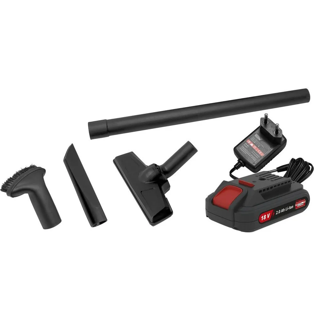 Akumulátorový ručný vysávač prachu HSS 18-201-05 zo série akumulátorových systémov 18V E3 na použitie v domácnosti a záhrade Vďaka rôznym násadám, ako napríklad násade na vysávanie škár, je možné použiť na vysávanie malých priestorov a rohov.