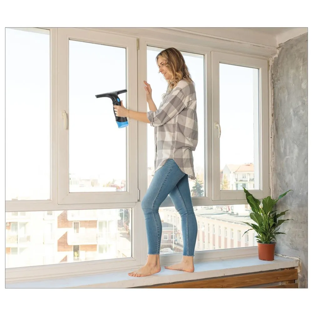 Akumulátorový vysávač na okná so zabudovaným akumulátorom čistí hladké plochy jednoducho a efektívne. Postará sa o žiarivo čisté okná bez zbytočnej námahy. Okná budú dokonale čisté bez šmúh a kvapkania vody. Navyše nie je nutné žiadne dodatočné čistenie.