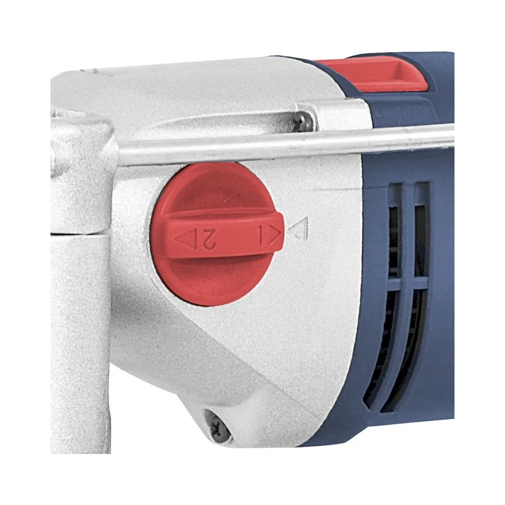 Príklepová vŕtačka zo série elektrického náradia Q9. Dvojstupňová prevodovka, plynulá regulácia otáčok, ľavý/pravý chod. Uzamykateľný spínač pre nepretržitú prevádzku. Robustné kovové puzdro prevodovky, kovové rýchloupínacie skľučovadlo bez náradia. Mäkká rukoväť, odnímateľná kovová prídavná rukoväť (vhodná pre pravákov aj ľavákov). Stabilný nastaviteľný hĺbkový doraz. Kufor s kovovými sponami, vrtáky do dreva Ø 3/4/5/6/8, HM vrtáky do kameňa Ø 4/5/6, vrtáky do kovu HSS Ø 4/5/6/8.