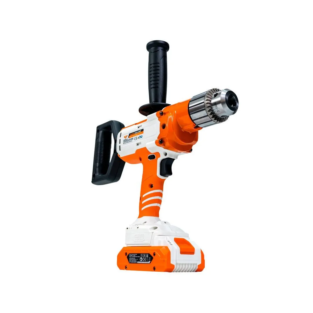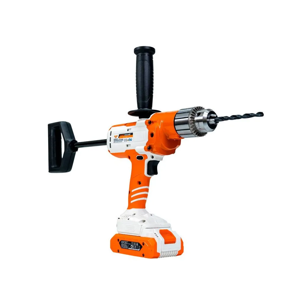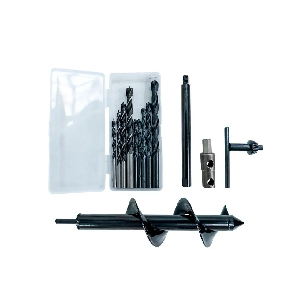 Dodávané príslušenstvo: 1x kľúč skľučovadla, 1x adaptér na zemné vrtáky, 1x zemný vrták 80x300 mm, 1x rukoväť v tvare D s predĺžením 150 mm, 5x vrták do kovu: 4 mm (2 ks); 5 mm; 6 mm; 8 mm, 4x vrták do dreva: 4 mm; 5 mm; 6 mm; 8 mm