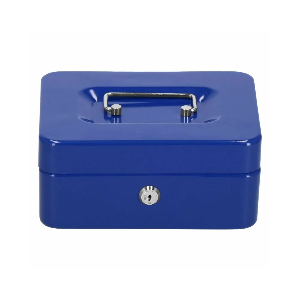 Kovová pokladnička so zámkom na kľúč. Rozmery 20x16x9 cm . Vyberateľná vnútorná vložka, 5 oddelených priehradok. Odolná hrubostenná konštrukcia z ocele. Integrovaná rukoväť na jednoduché prenášanie. Ideálne na ukladanie hotovosti a ďalších cenností.