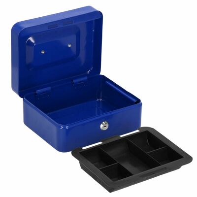 Kovová pokladnička so zámkom na kľúč. Rozmery 20x16x9 cm . Vyberateľná vnútorná vložka, 5 oddelených priehradok. Odolná hrubostenná konštrukcia z ocele. Integrovaná rukoväť na jednoduché prenášanie. Ideálne na ukladanie hotovosti a ďalších cenností.