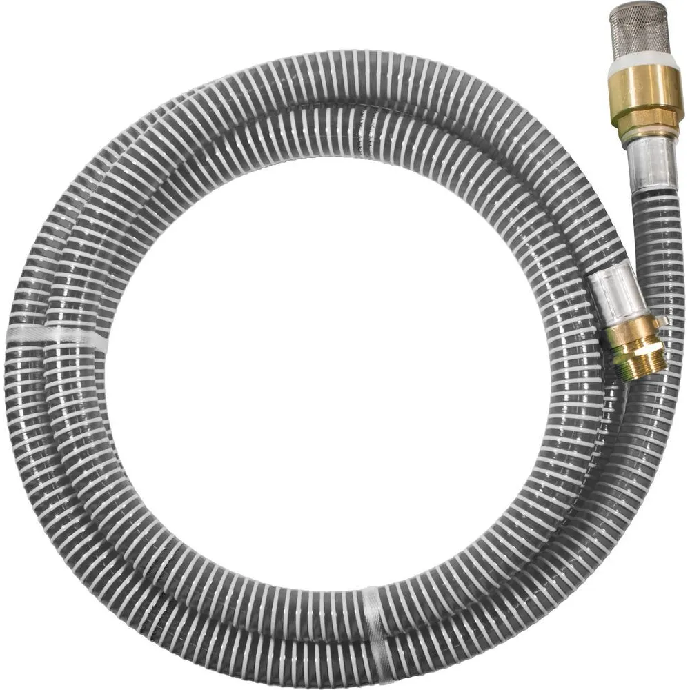 Špirálová sacia garnitúra s mosadznými armatúrami, mosadzným spätným ventilom so sacím košom z ušľachtilej ocele, zalisované koncovky. S prípojkou Vario pre vonkajší a vnútorný závit.