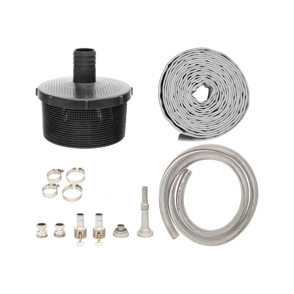 Súprava pozostáva z sacej hadice 1 1/2" 3 m, tlakovej hadice 1 1/2" 7 m, sacieho koša, hadicových spôn, ostrekovacej trysky,...