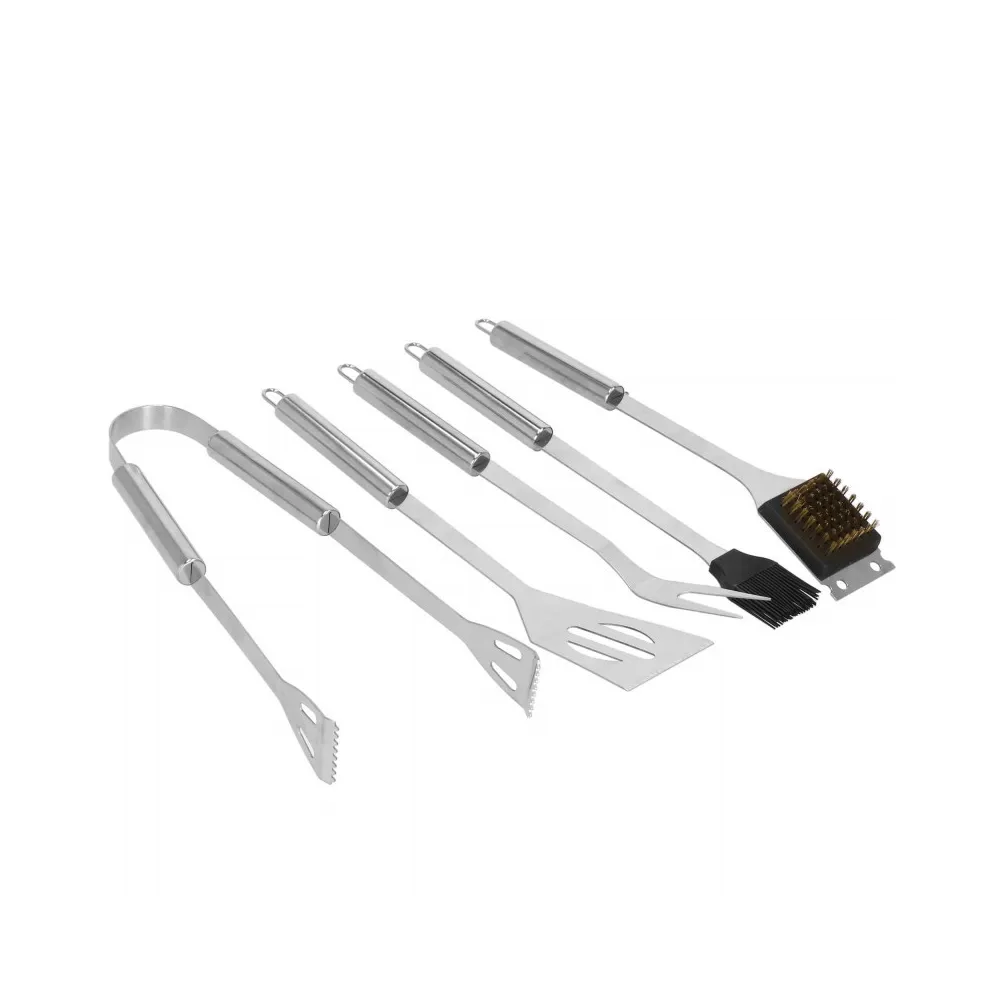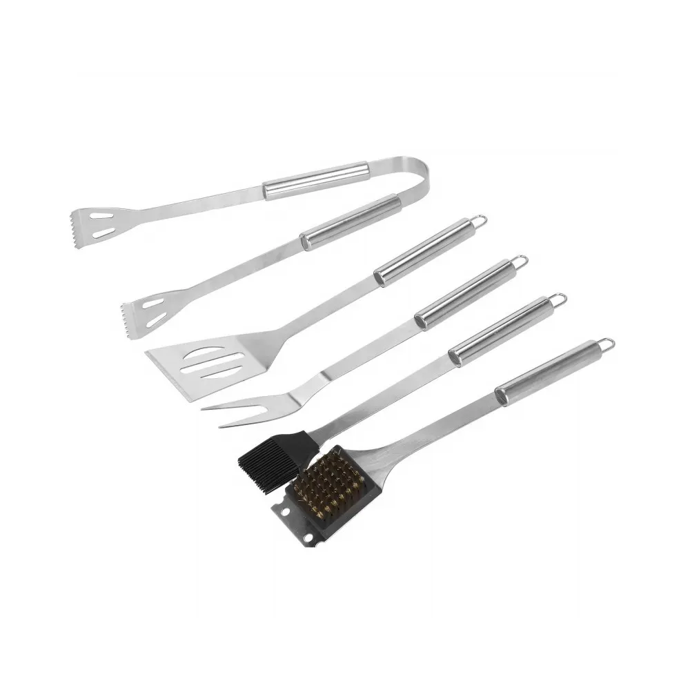 Nerezová sada na grilovanie v praktickom púzdre . Obsahuje 5ks náčinia. Vyrobené z kvalitných a odolných materiálov. Úchyty na zavesenie, ľahko sa čistí, dlhá životnosť. Pohodlné a bezpečné používanie, profilované rukoväte. Nevyhnutná sada pre každého milovníka grilovania.