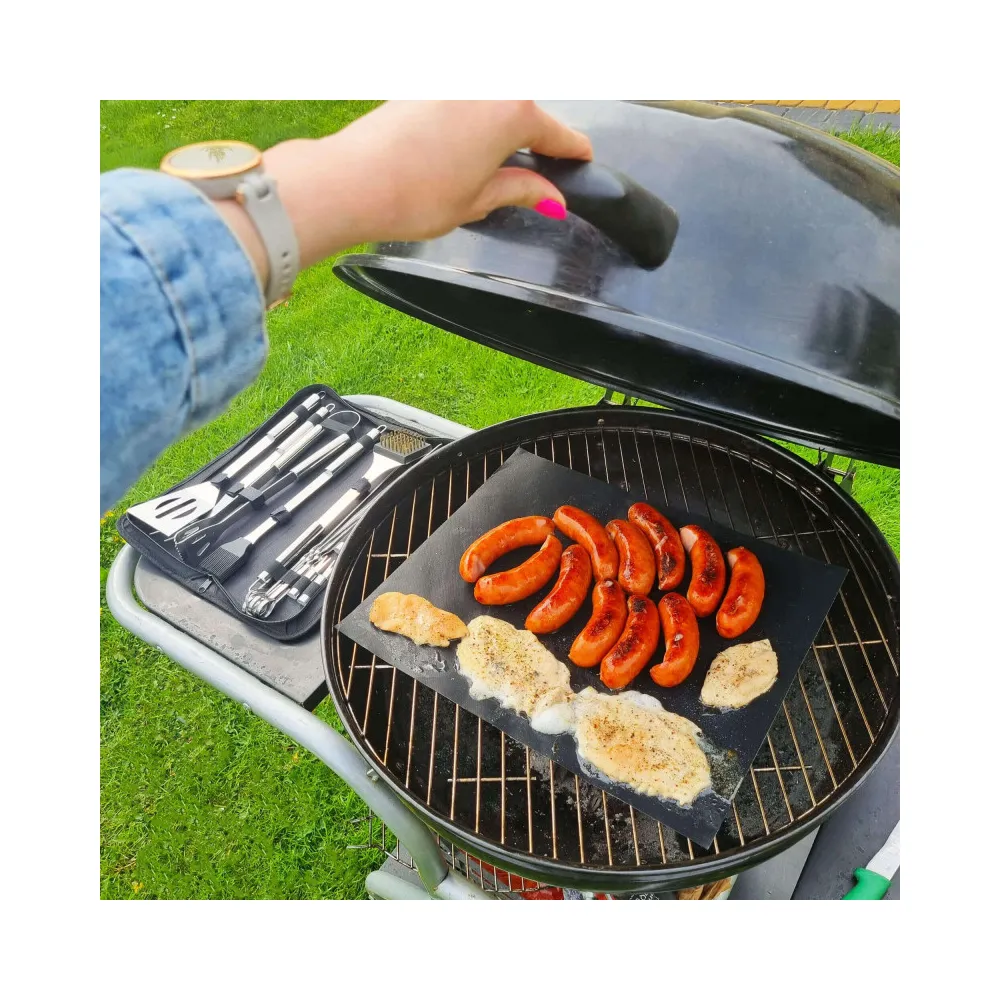 Puzdro má gumičky a suchý zips , takže každý doplnok bude mať svoje bezpečné miesto. Toto riešenie zabraňuje oderu a poškodeniu riadu. S praktickým a odolným príslušenstvom bude grilovanie oveľa jednoduchšie a príjemnejšie .
