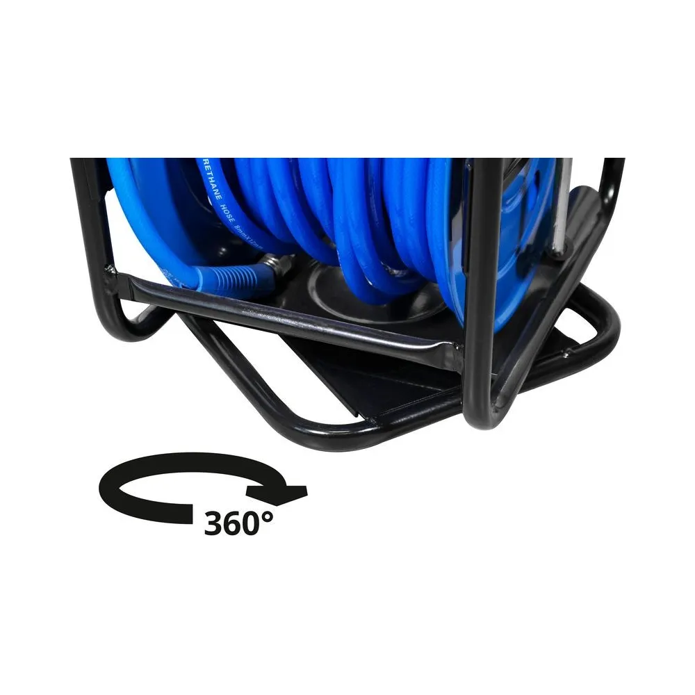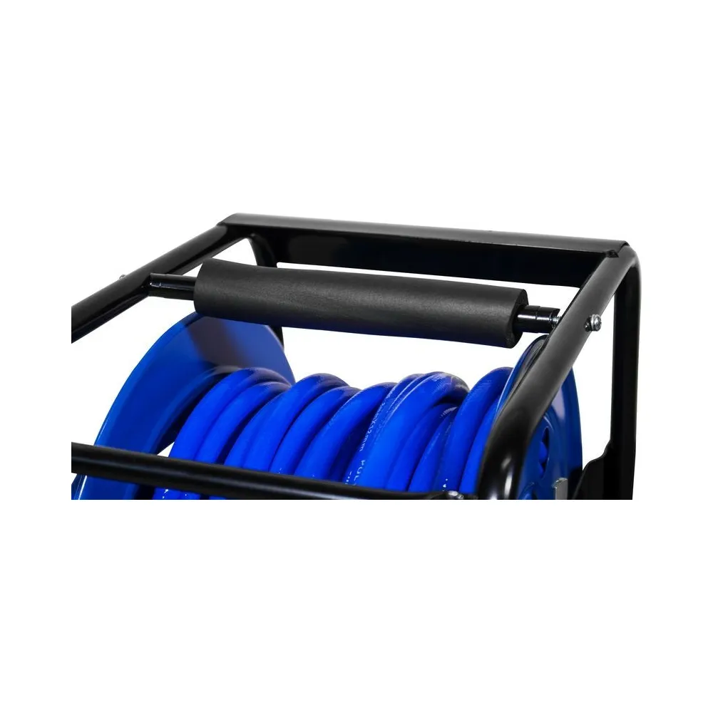 Prenosný navíjací bubon s 30 m PU tlakovou hadicou. Oceľová konštrukcia bubna s pevnou stojnou pätkou a otočným vrchným rámom (360 °), kľučka na navíjanie hadice s aretáciou.