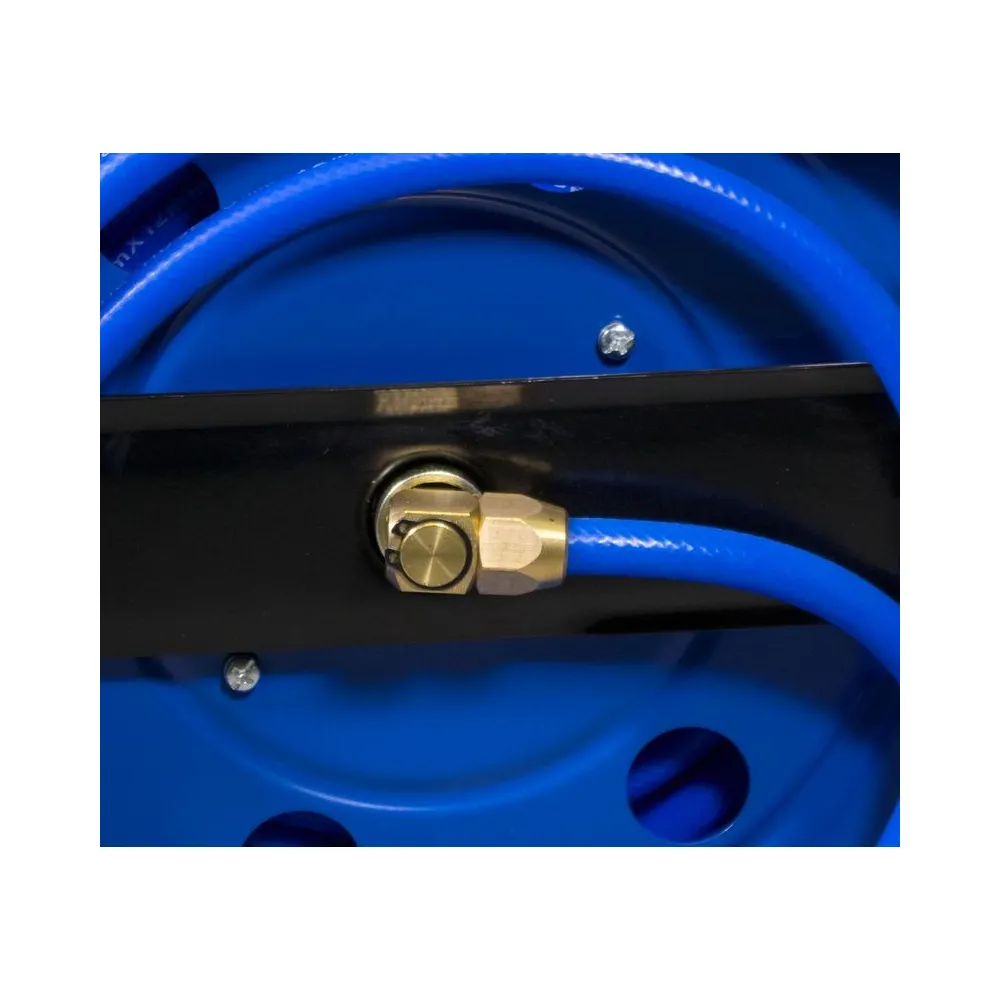 Prenosný navíjací bubon s 30 m PU tlakovou hadicou. Oceľová konštrukcia bubna s pevnou stojnou pätkou a otočným vrchným rámom (360 °), kľučka na navíjanie hadice s aretáciou. Vysokotlaková polyuretánová hadica s textilnou vložkou, vrátane vsuvky a rýchlospojky, odolná proti oderu, prasknutiu, olejovým prímesiam (v stlačenom vzduchu) aj nízkym teplotám. Otočné kĺby na oboch koncoch hadice zabraňujú jej skrúteniu.