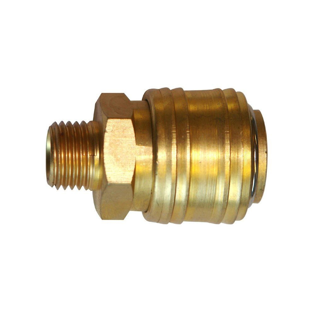 Mosadzná hadicová rýchlospojka so závitom. V balení 1 ks.