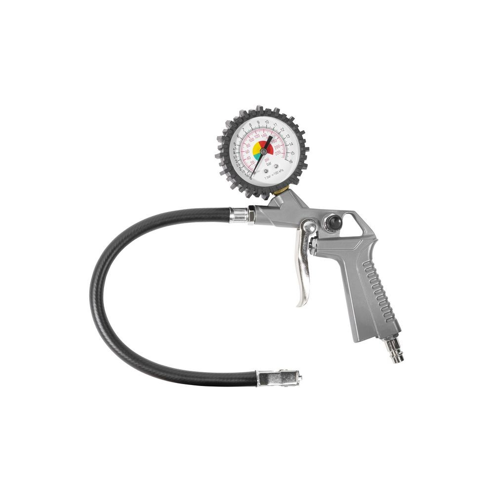 Hustilka pneumatík na plnenie a kontrolu tlaku v pneumatikách automobilov. Veľký manometer, rukoväť a kryt z hliníka, gumová manžeta,...
