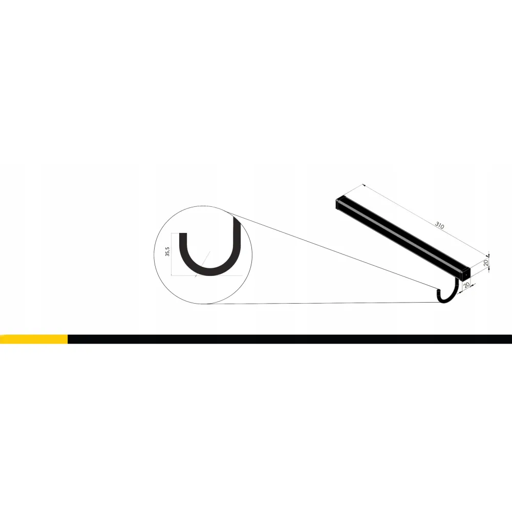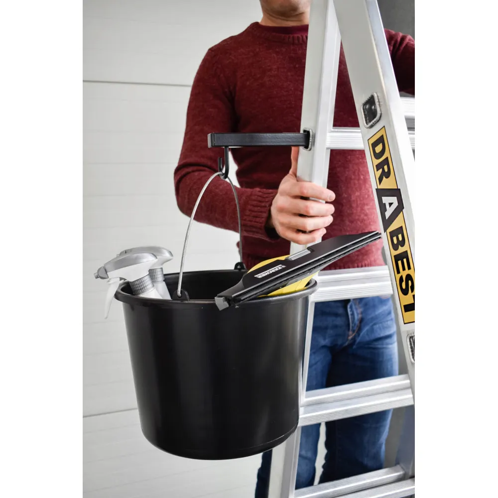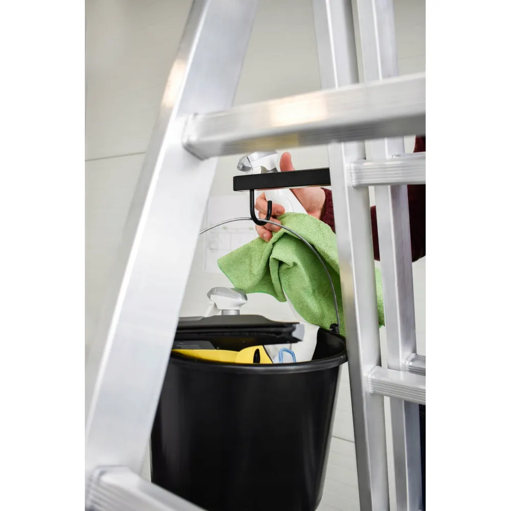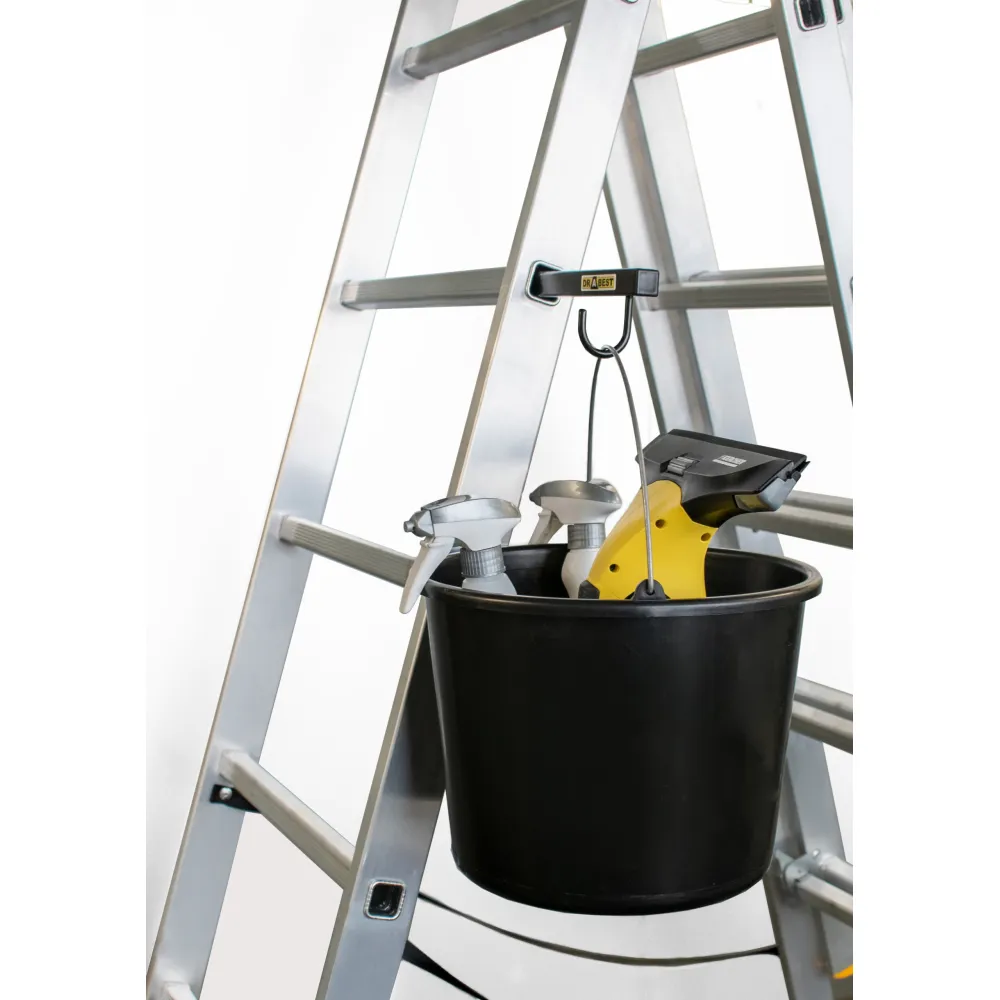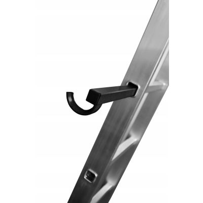 Praktický hák na bezpečné zavesenie bremien na rebrík. Univerzálne použitie pre akýkoľvek lisovaný typ rebríka. Vysoko odolný materiál voči záťaži a poveternostným podmienkam. Dĺžka 31 cm, profil 20x20 mm.