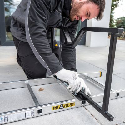Dištančný držiak DRABEST AK-ORR PRO je praktickým a univerzálnym riešením pre prácu na miestach, kde je potrebné udržať rebrík v bezpečnej vzdialenosti od steny alebo rohu fasády. Ideálne na čistenie odkvapov, opravy fasád či inštalácie , kde je vyžadovaný odstup. Držiak stabilizuje rebrík a zamedzuje jeho kymácaniu , čím výrazne zvyšuje bezpečnosť pri práci vo výškach.