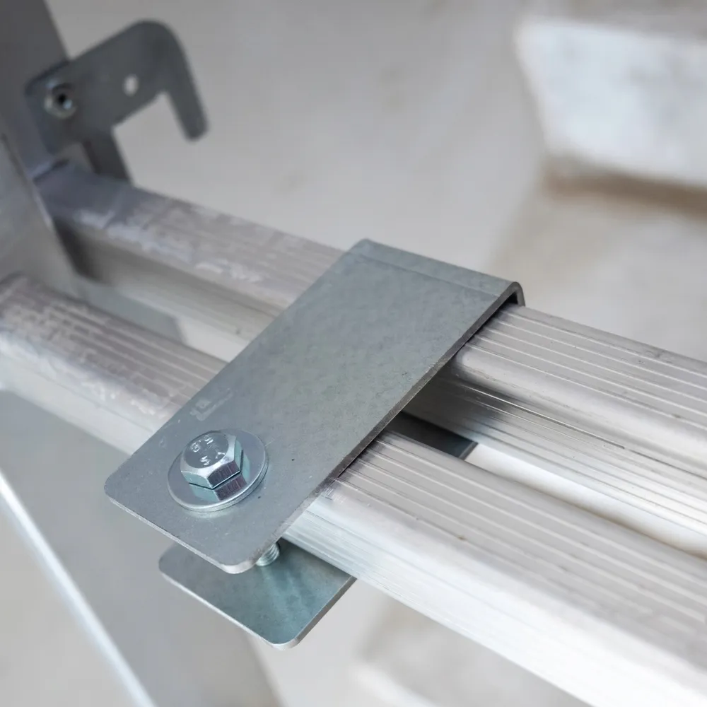 Jednoduché a efektívne riešenie pre bezpečné použitie rebríka na schodoch . Schodisková úprava je určená pre všetky rebríky s profilom 60×20 mm a umožňuje ich stabilné umiestnenie aj na nerovnom povrchu. Vyrobené z masívnej ocele pre maximálnu odolnosť a dlhú životnosť. Ideálny pomocník pri práci na schodiskách.