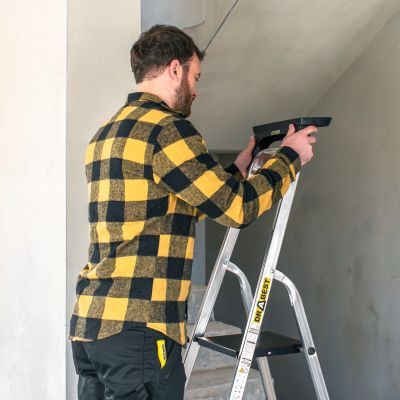 Plastový nadstavec DRABEST AK-PN je praktickým doplnkom pre každého, kto pracuje so schodíkmi – či už pri rekonštrukciách, maľovaní alebo bežných domácich opravách. Tento nástavec ponúka integrovaný držiak na náradie , odkladaciu poličku a háčik na vedro , vďaka čomu budete mať všetky potrebné pomôcky vždy na dosah ruky. Je ideálnym riešením na zvýšenie efektivity a pohodlia pri výškových prácach.