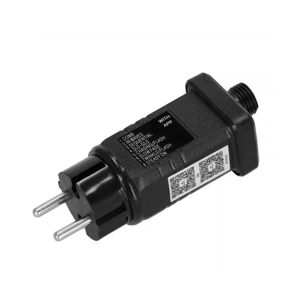 Náhradný sieťový adaptér pre LED svetelné reťaze. Bluetooth rozhranie pre bezdrôtové prepojenie so smartfónom alebo tabletom, 8 svetelných funkcií, časovač, stmievač. Aplikácia pre Apple aj Android. Vodeodolný s krytím IP44, vhodný na vonkajšie / vnútorné použitie. Štandardný konektor pre väčšinu LED osvetlenia na trhu, 8,4 W, vstupné napätie 220-250V, výstupné napätie 31V.