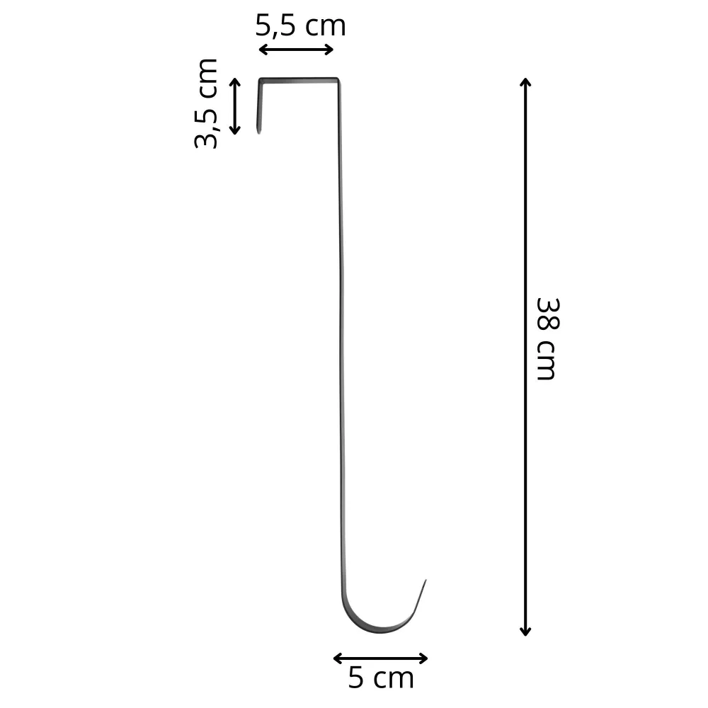 Štýlový háčik z masívneho kovu s dĺžkou 38 cm umožňuje ľahké zavesenie vencov a dekorácií bez nutnosti vŕtania. Vďaka univerzálnemu prevedeniu pasuje na väčšinu dverí a jeho čierny dizajn pôsobí elegantne v každom interiéri. Inštalácia je rýchla a bez námahy – stačí nasadiť na hornú hranu dverí a dekorácia môže byť behom chvíľky na svojom mieste.