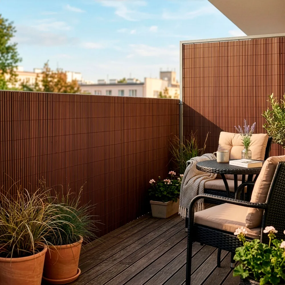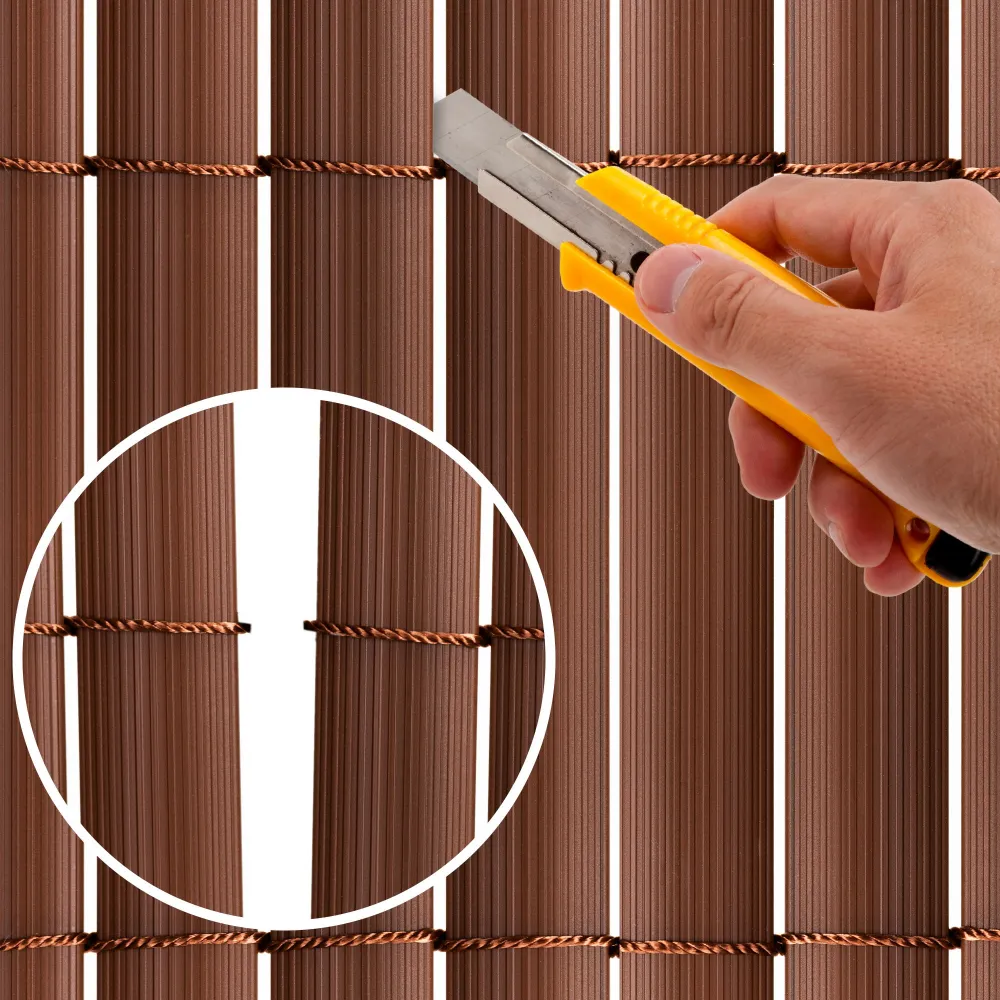 PVC zástena 100x500 cm na balkón plot SPRINGOS GA0245 hnedá je praktické a elegantné riešenie pre oddelenie priestoru na balkóne, terase alebo pri plote. Vďaka dekoru umelého bambusu pôsobí veľmi esteticky a zároveň poskytuje účinnú ochranu pred zrakmi susedov . Pevne priliehajúce lamely pomáhajú vytvoriť viac súkromia a príjemnejšie prostredie pre každodenný odpočinok.