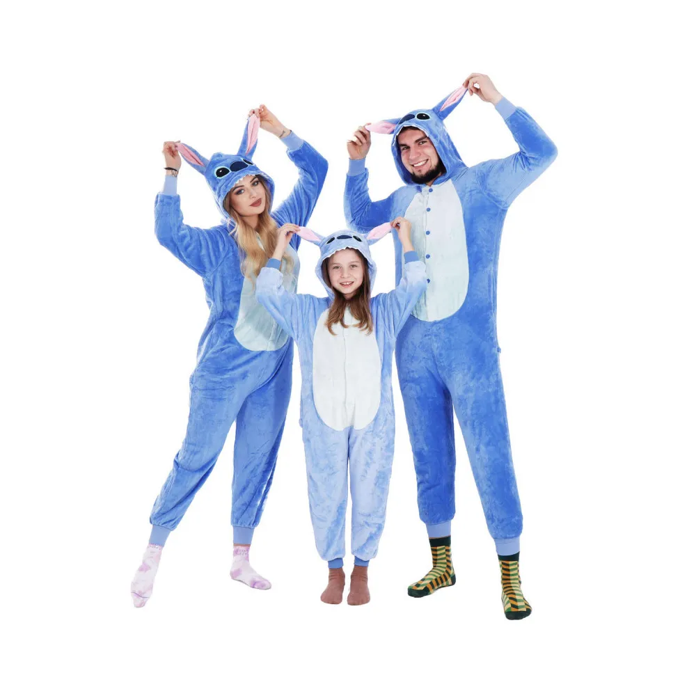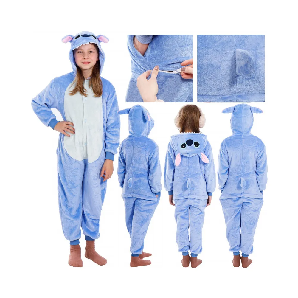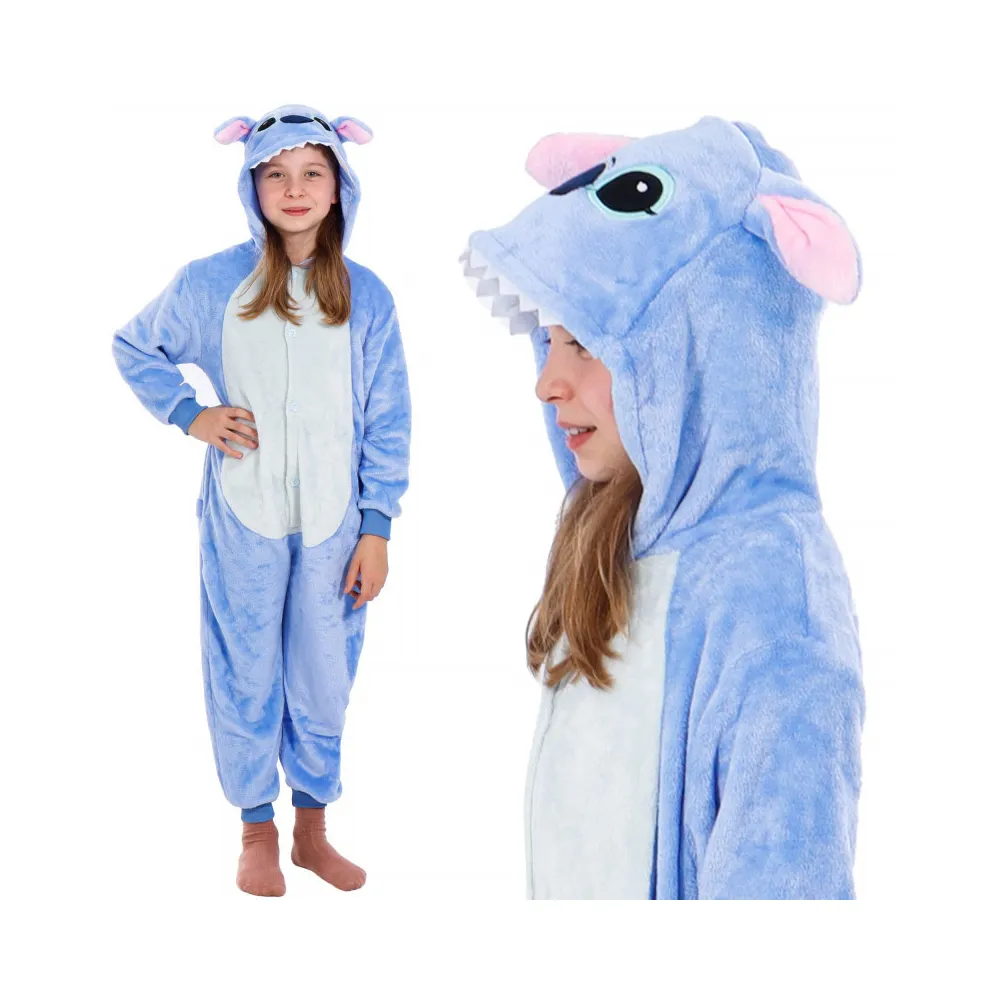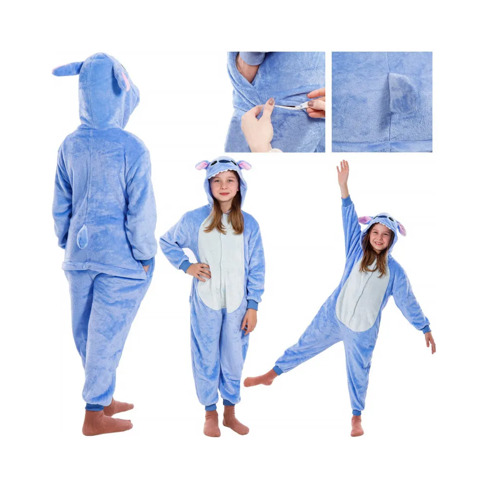 Detské hrejivé pyžamo s rozprávkovým motívom Stitch. Pohodlný overal štýl so zapínaním na gombíky, elastické zakončenie nohavíc a rukávov. Funčná kapucňa s ušami, hlboké vrecká, rafinovaný zips pre ľahký prístup na toaletu. Perfektný na každodenné nosenie. Skvelé ako pyžamo, denný odev na chladné obdobie alebo štýlový oblek na maškarný. Veľkosť 120-130 cm.