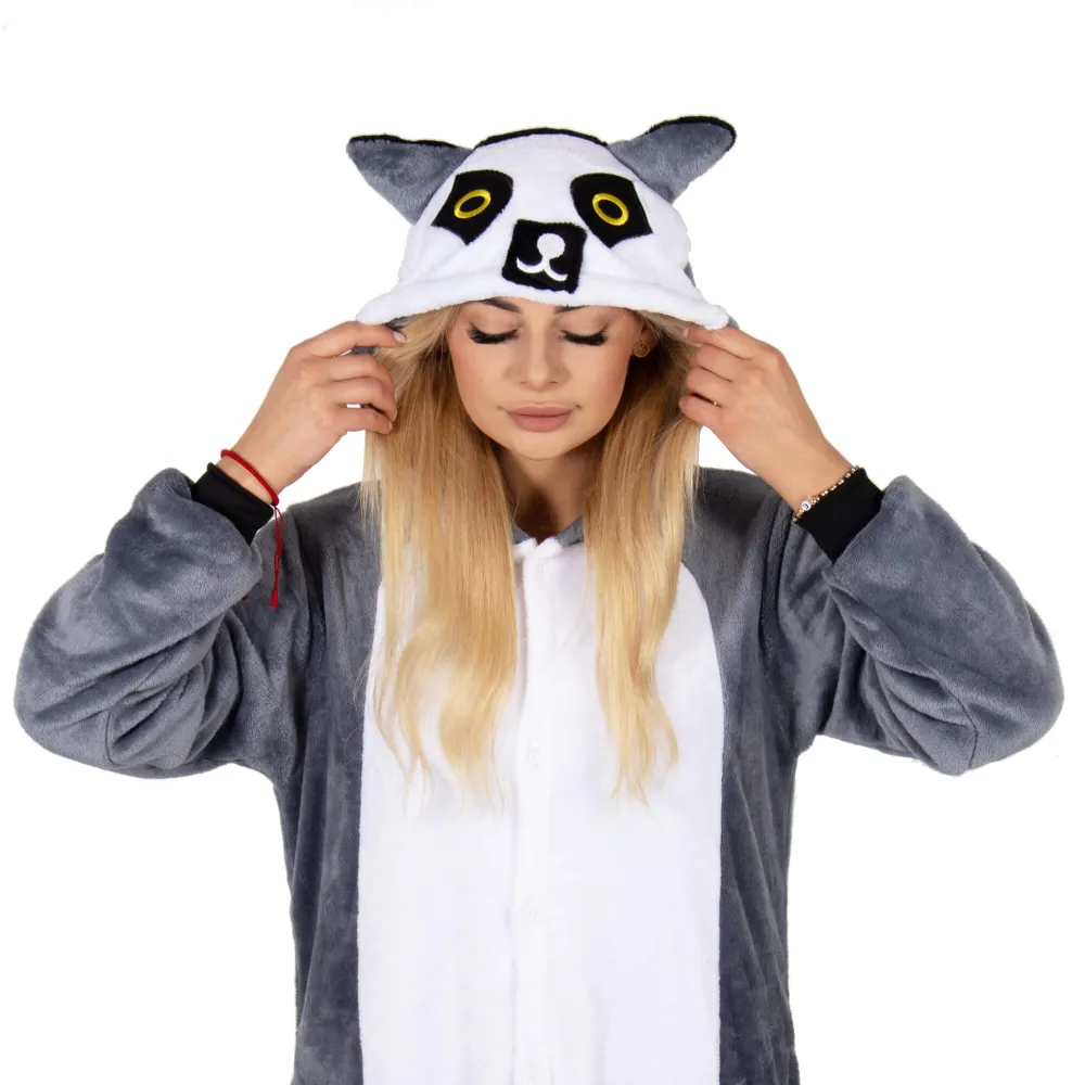 Pyžamo Lemur veľ. S SPRINGOS KIGURUMI šedo-biele