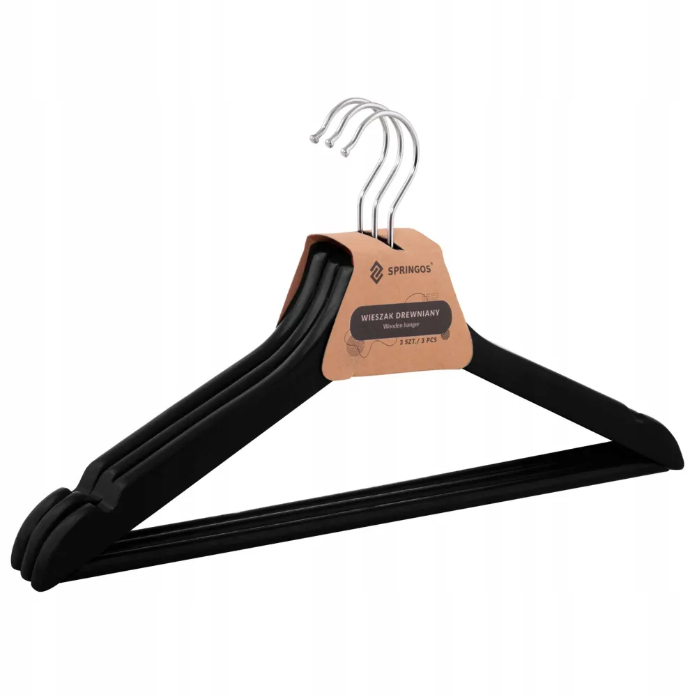 Ramienka na šaty 43cm drevené, čierne, súprava 3ks SPRINGOS URBAN