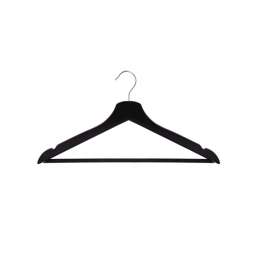 Sada 3ks ramienok na šaty a ďalšie oblečenie. Masívne drevené prevedenie, lakované do čiernej farby. Klasický tvar, šírka 43 cm. Spodná tyčka, postranné priehlbiny. Praktický doplnok vašej skrine.