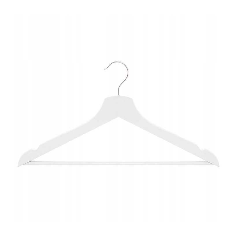 Sada 3ks ramienok na šaty a ďalšie oblečenie. Masívne drevené prevedenie, lakované do bielej farby. Klasický tvar, šírka 43 cm. Spodná tyčka, postranné priehlbiny. Praktický doplnok vašej skrine.