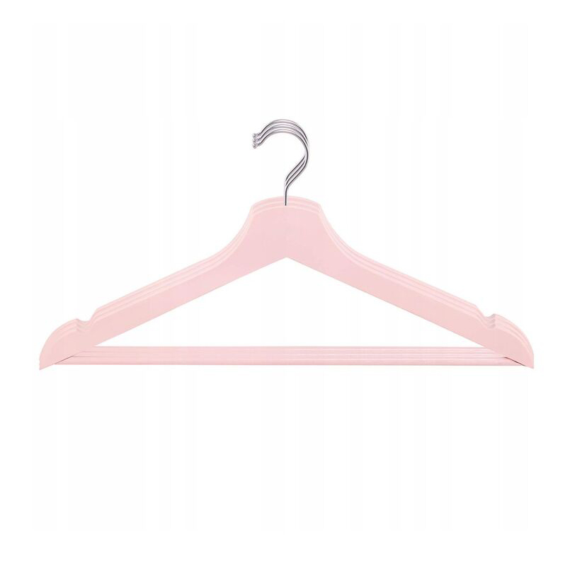 Sada 3ks ramienok na šaty a ďalšie oblečenie. Masívne drevené prevedenie, lakované do ružovej farby. Klasický tvar, šírka 43 cm. Spodná tyčka, postranné priehlbiny. Praktický doplnok vašej skrine.