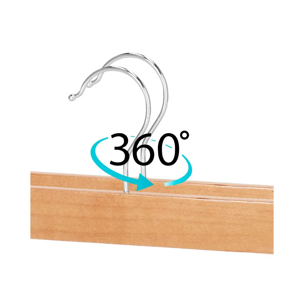 Kovový háčik vo veľmi praktickom tvare, ktorý je otočný o 360 stupňov , uľahčuje zavesenie vešiaku na rôzne miesta. Vďaka solídnemu spracovaniu ramienok sa zvýšila životnosť produktu . Kombinácia klasickej formy s ľahko geometrickým tvarom háčika sa bude skvele hodiť do každého aranžmánu . Veľkou výhodou uloženia šatníka na ramienka je, že sa oblečenie nekrčí a je ihneď pripravené na nosenie. Prezentované drevené vešiaky nielen dokonale plnia túto rolu, ale aj krásne vyzerajú . Sú skvelou ozdobou každej šatne alebo skrine.