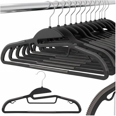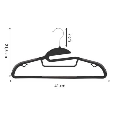Elegantná sada 30 kusov šatníkových ramienok v čiernej farbe pomôže udržať šatník prehľadný a organizovaný. Otočný hák 360° zaisťuje pohodlnú manipuláciu, protišmykové ramená aj spodná priečka zabraňujú skĺzavaniu oblečenia. Úzky tvar šetrí miesto a dva malé háčiky umožňujú zavesenie doplnkov či odevov s pútkami. Ramienka na šaty sú vhodné pre košele, šaty, nohavice aj ďalšie odevy.