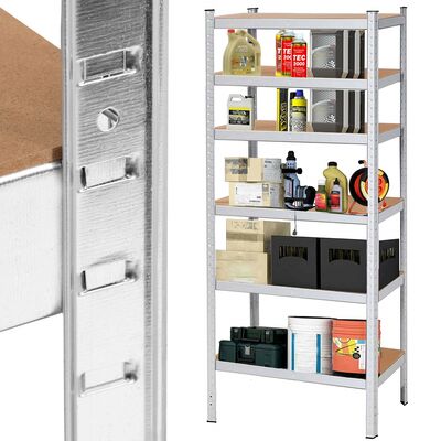 Regál má stabilnú kovovú konštrukciu a 6 políc zo silnej MDF dosky . Police sú výškovo nastaviteľné a každú je možné zaťažiť až do hmotnosti 150 kg. Celková nosnosť regálu je 1050 kg.