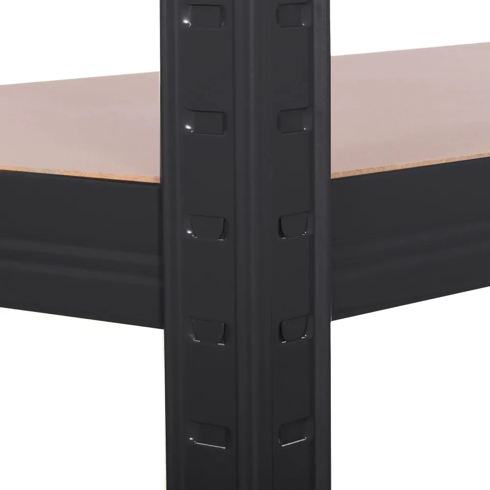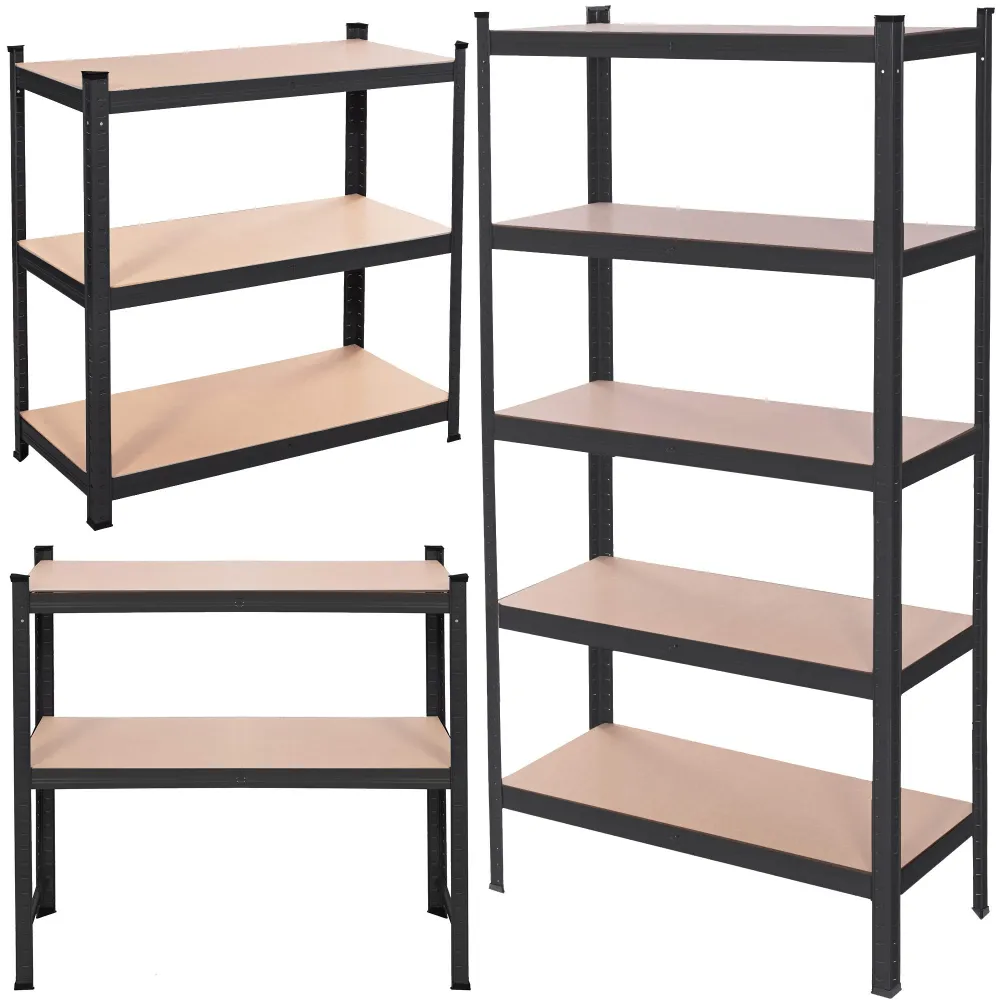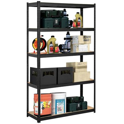 Variabilne zostaviteľný regál s nosnosťou 675 kg. Stabilná bezskrutková konštrukcia, rýchla montáž, výškovo nastaviteľné police. Lakované čierne prevedenie s 5 MDF policami. Rozmery 150x75x30 cm.