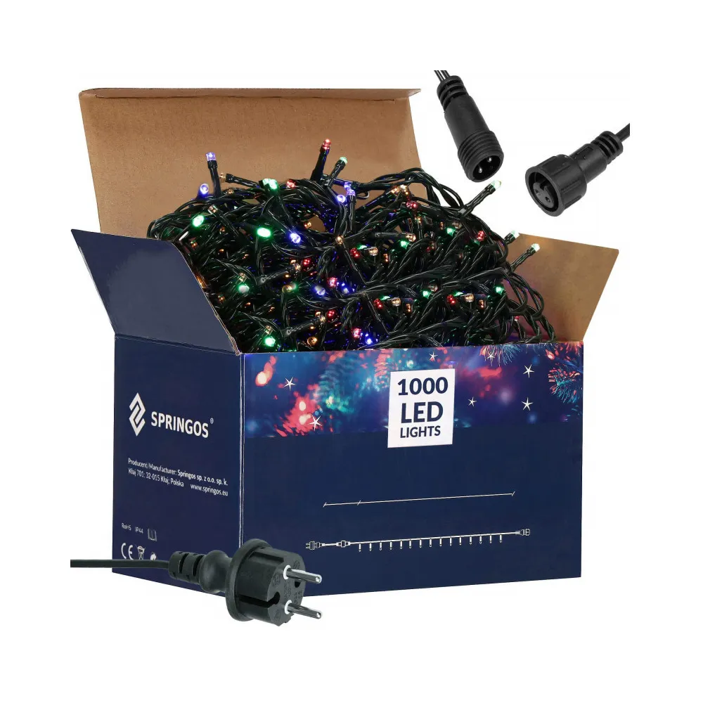 LED svetelná reťaz vhodná pre vnútorné aj vonkajšie použitie. Úsporné ľad diódy, vodeodolné prevedenie, krytie IP44. Dĺžka svetelnej časti 80 m, napájací kábel 1,5 m. Farba multicolor, 1000 ľad.
