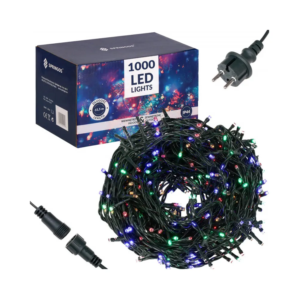 LED svetelná reťaz vhodná pre vnútorné aj vonkajšie použitie. Úsporné ľad diódy, vodeodolné prevedenie, krytie IP44. Dĺžka svetelnej časti 60 m, napájací kábel 1,5 m. Farba multicolor, 1000 ľad.
