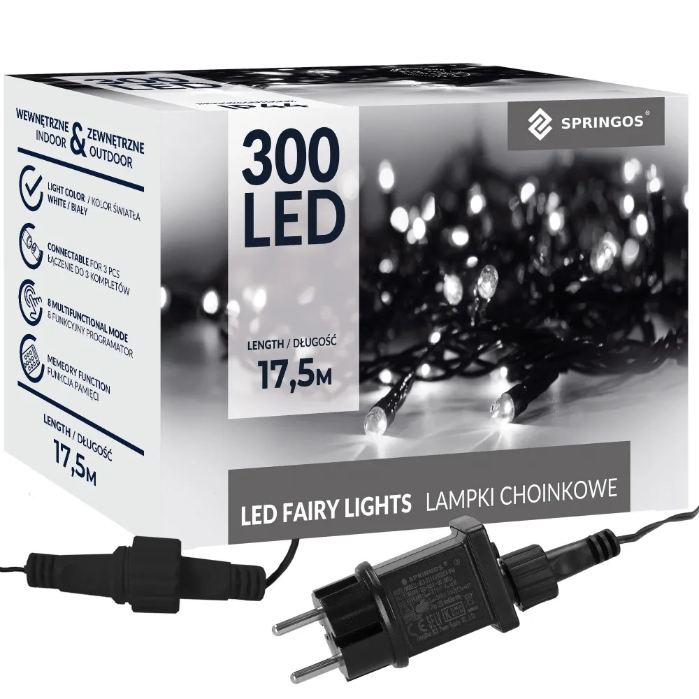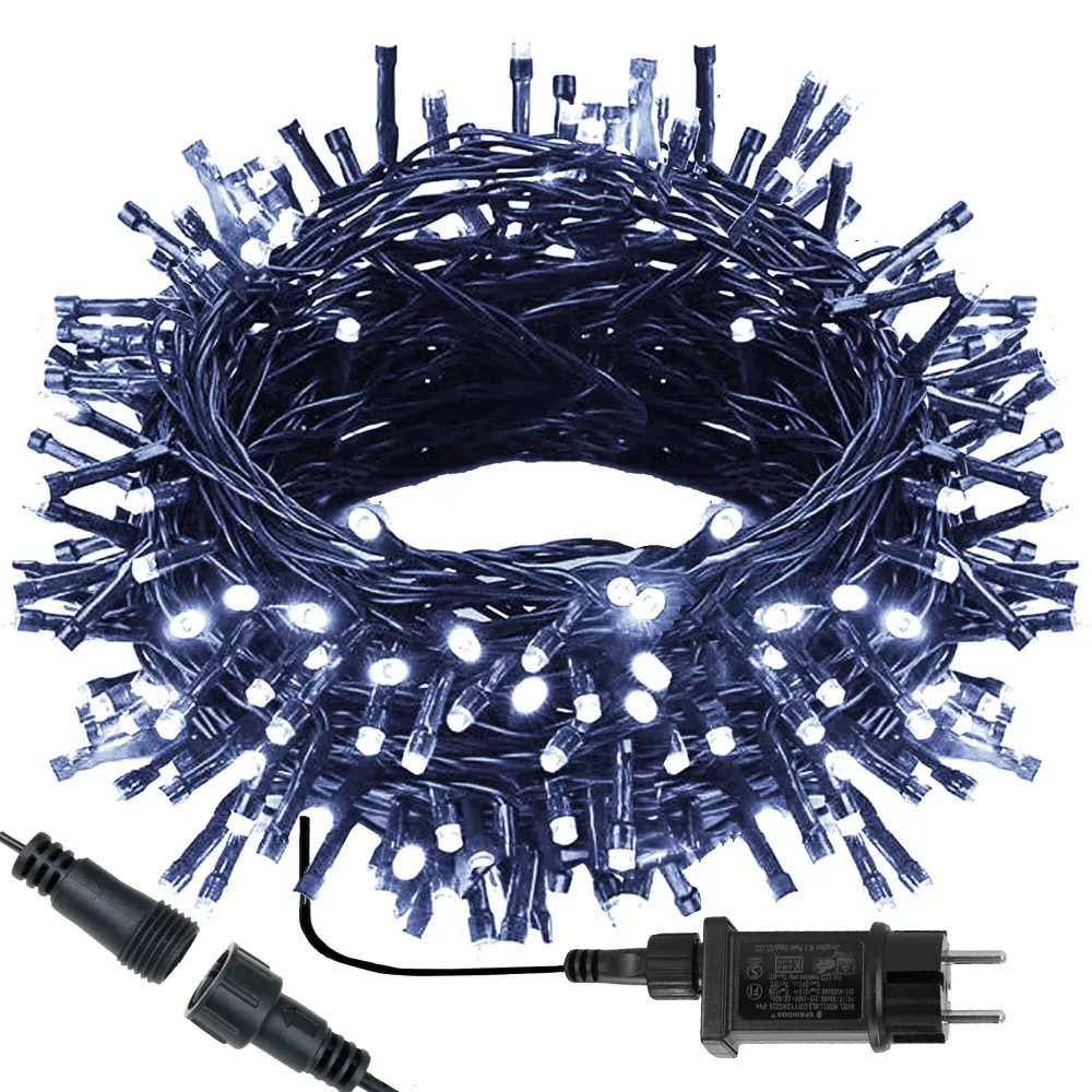 LED svetelná reťaz s programátorom a 8 svetelnými funkciami vrátane efektu záblesku. Adaptér na bezpečné napätie, ultra úsporné ľad diódy. Vnútorné aj vonkajšie použitie, vodeodolné prevedenie, krytie IP44. Dĺžka svetelnej časti 15 m, napájací kábel 2,5 m. Farba studená biela, 300 ľad.