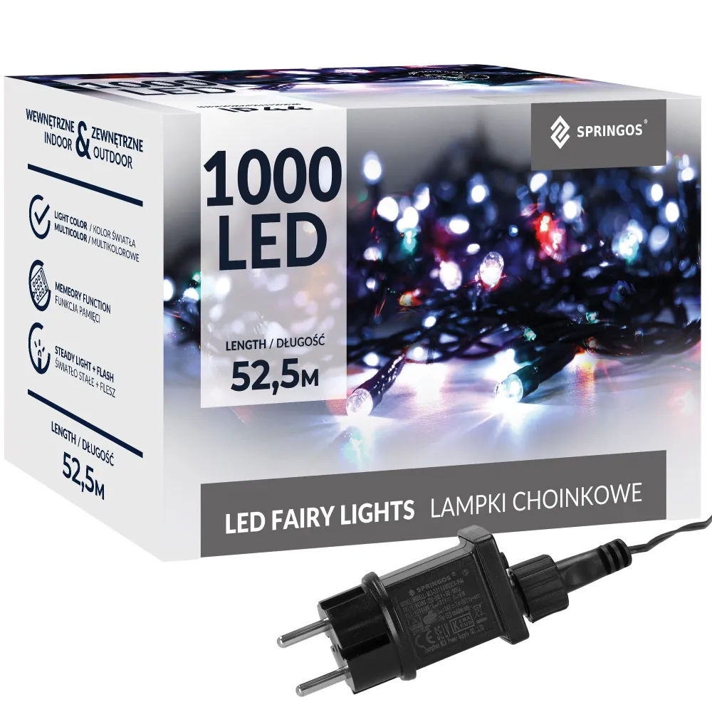 LED svetelná reťaz s programátorom a 8 svetelnými funkciami vrátane efektu záblesku. Adaptér na bezpečné napätie, pamäť posledného režimu, ultra úsporné led diódy. Vnútorné aj vonkajšie použitie, vodeodolné prevedenie, krytie IP44. Dĺžka svetelnej časti 50 m, napájací kábel 2,5 m. Farba multicolor, 1000 ľad.