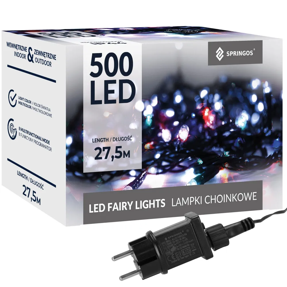 LED svetelná reťaz s programátorom, 8 svetelnými funkciami. Adaptér na bezpečné napätie a pamäť posledného režimu. Ultra úsporné ľad diódy, vnútorné aj vonkajšie použitie, vodeodolné prevedenie, krytie IP44. Dĺžka svetelnej časti 25 m, napájací kábel 2,5 m. Farba multicolor, 500 ľad.