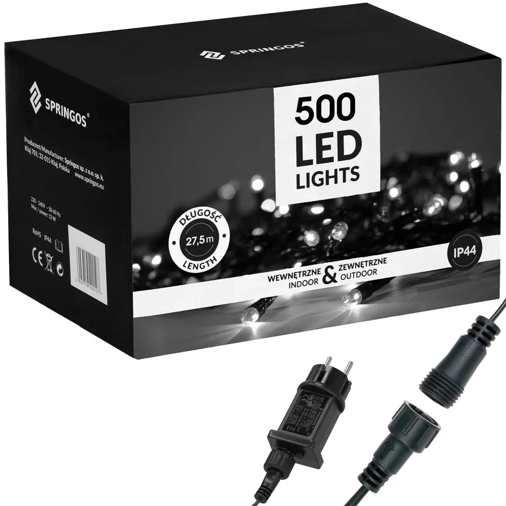 LED svetelná reťaz - 27,5m, 500LED, IP44, studená biela + záblesky