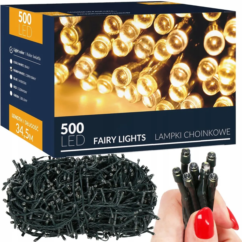 LED svetelná reťaz - 34,5m, 500LED, 8 funkcií, teplá biela