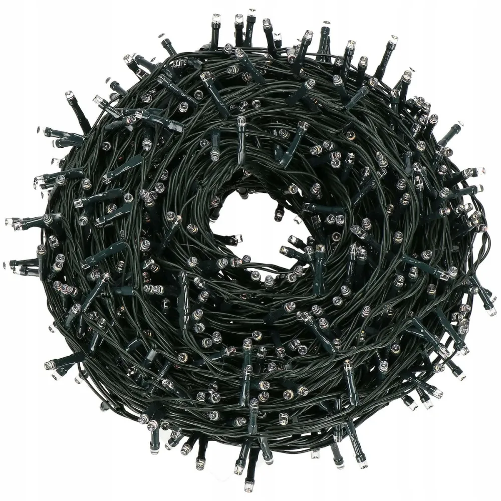 LED svetelná reťaz s 8 svetelnými funkciami. Úsporné diódy, vnútorné použitie, krytie IP20. Dĺžka svetelnej časti 26 m, napájací kábel 1,5 m. Farba studená biela, 400 ľad.