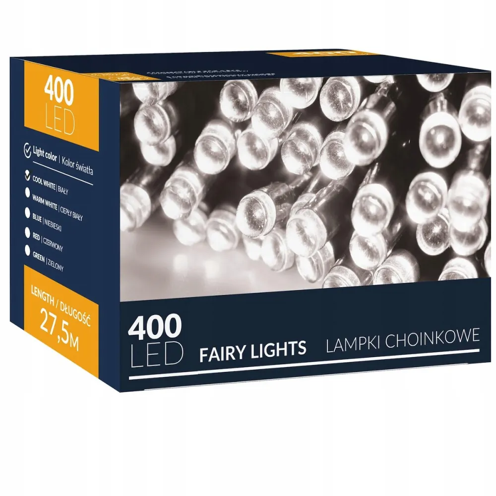 LED svetelná reťaz - 27,5m, 400LED, 8 funkcií, studená biela