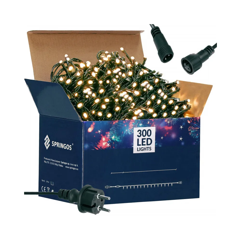 LED svetelná reťaz vhodná pre vnútorné aj vonkajšie použitie. Úsporné ľad diódy, vodeodolné prevedenie, krytie IP44. Dĺžka svetelnej časti 18 m, napájací kábel 1,5 m. Farba teplá biela, 300 ľad.