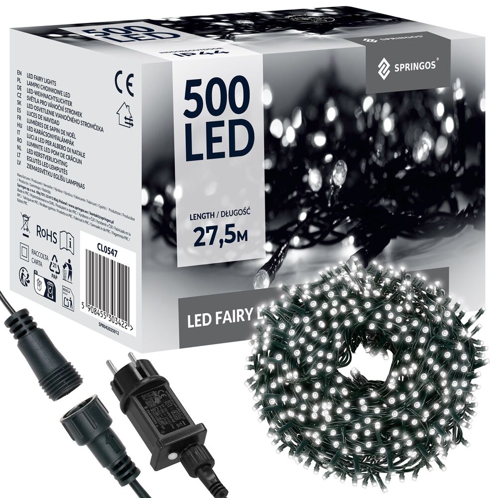 LED svetelná reťaz s celkovou dĺžkou 27,5 m je ideálna pre vytvorenie výraznej a elegantnej vianočnej atmosféry v interiéri aj exteriéri. Svieti jasným studene bielym svetlom, ktoré nádherne zvýrazní dekorácie, fasády, okná, pergoly či vianočné stromčeky. Osvetlenie tvorí 500 ultra úsporných mikro LED diód , ktoré poskytujú vysokú svietivosť pri minimálnej spotrebe energie.