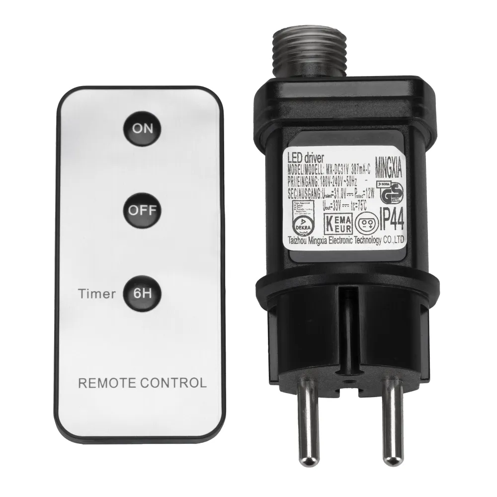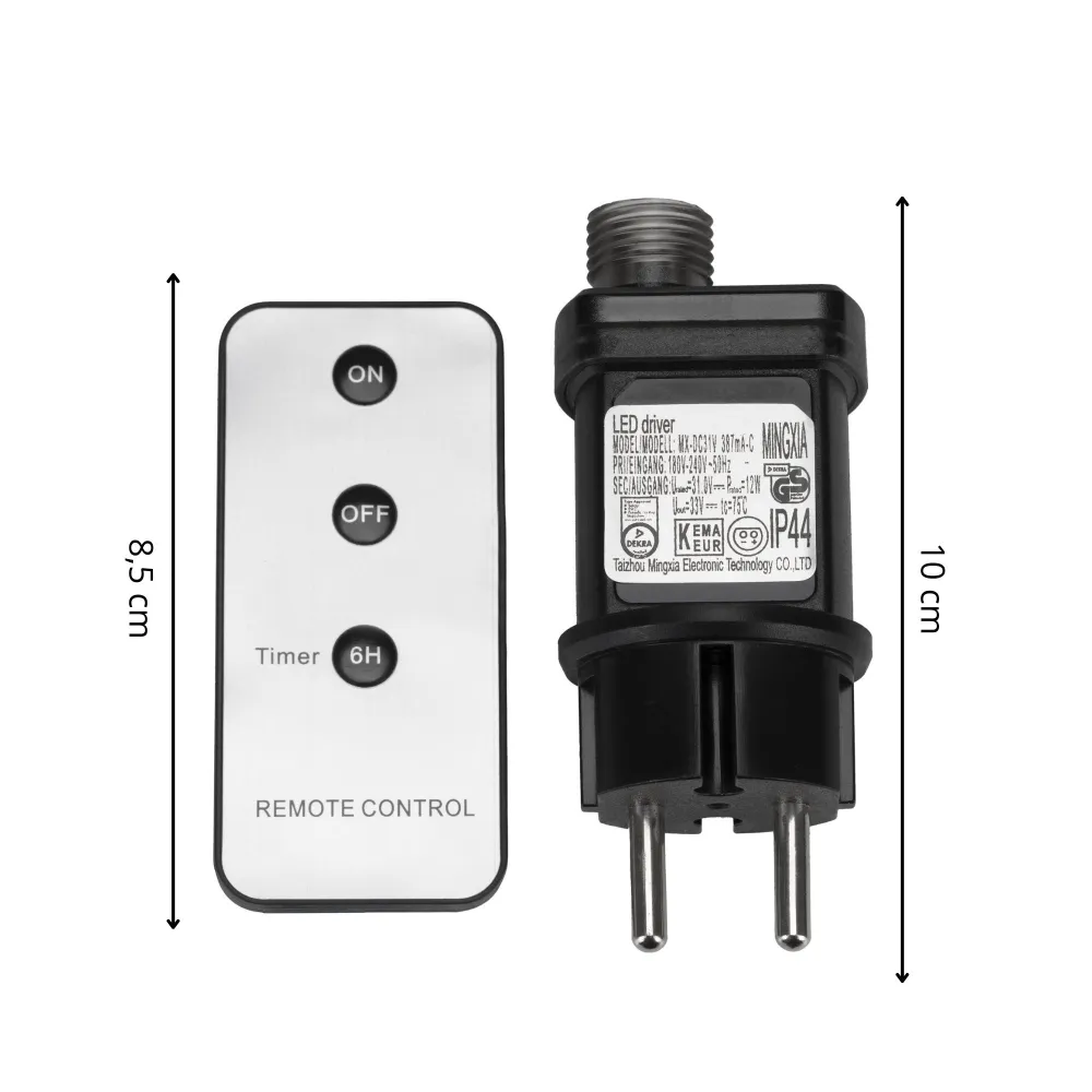 Napájací zdroj pre LED osvetlenie ovládač + časovač IP44 SPRINGOS CL1242 je profesionálne zariadenie radu SYSTEM PRO , určené pre napájanie vianočného a dekoratívneho LED osvetlenia. Ponúka výkon až 60W a výstupné napätie 31 V , vďaka čomu zvládne napájať až 1500 LED diód . Súčasťou je diaľkové ovládanie , ktoré umožňuje pohodlné zapínanie a vypínanie svetiel, a časovač s cyklom 6 hodín zapnuté / 18 hodín vypnuté pre automatickú prevádzku. Štandardný konektor zaisťuje kompatibilitu s väčšinou LED systémov.