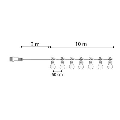 LED svetelná reťaz banky - 13m, 20LED, IP44, multicolor je štýlová dekorácia , ktorá dodá priestoru príjemnú a slávnostnú atmosféru . Obsahuje 20 farebných LED svetiel v tvare baniek , ktoré rovnomerne osvetľujú priestor a vytvárajú útulné prostredie. Vďaka dĺžke 13 metrov je ideálny na výzdobu záhrady, terasy, balkóna alebo interiéru.