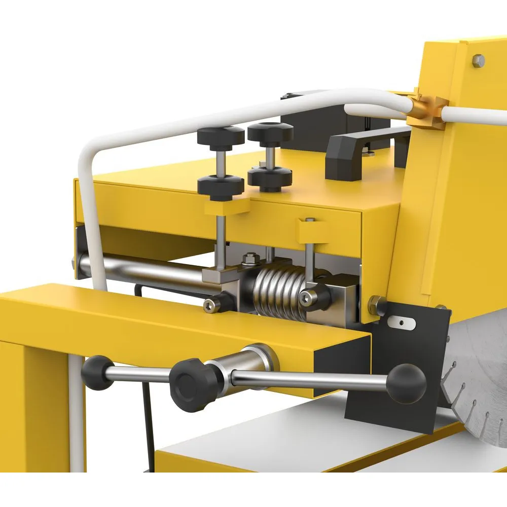 Všestranný a výkonný nástroj na presné rezanie rôznych materiálov, ako sú obrubníky a hlboké obrubníky, betónové materiály a dlažobné kocky, kamene. Hlavu je možné otočiť až o 45 °, umožňuje presné rezy v rôznych uhloch. Jemné nastavenie uhla rezu, pomocou excentrickej skrutky je možné presne nastaviť uhol rezu. Podvozok s guličkovým ložiskom pre ľahkú prepravu. Odpružené skladacie nožičky pre menší úložný priestor a zjednodušenie prepravy a skladovania. Zabudovaný osobný bezpečnostný spínač pre maximálnu bezpečnosť. Ochranný spínač proti preťaženiu a pozvoľný štart chráni stroj a zaisťuje bezpečnú prevádzku. Paralelný doraz umožňuje paralelné rezy až do šírky 210 mm. Maximálna hĺbka rezu 72 mm pri 45 ° a 115 mm pri 90 °. Vďaka svojej robustnej konštrukcii a presným funkciám je rezačka ideálnou voľbou pre profesionálov i domácich majstrov.